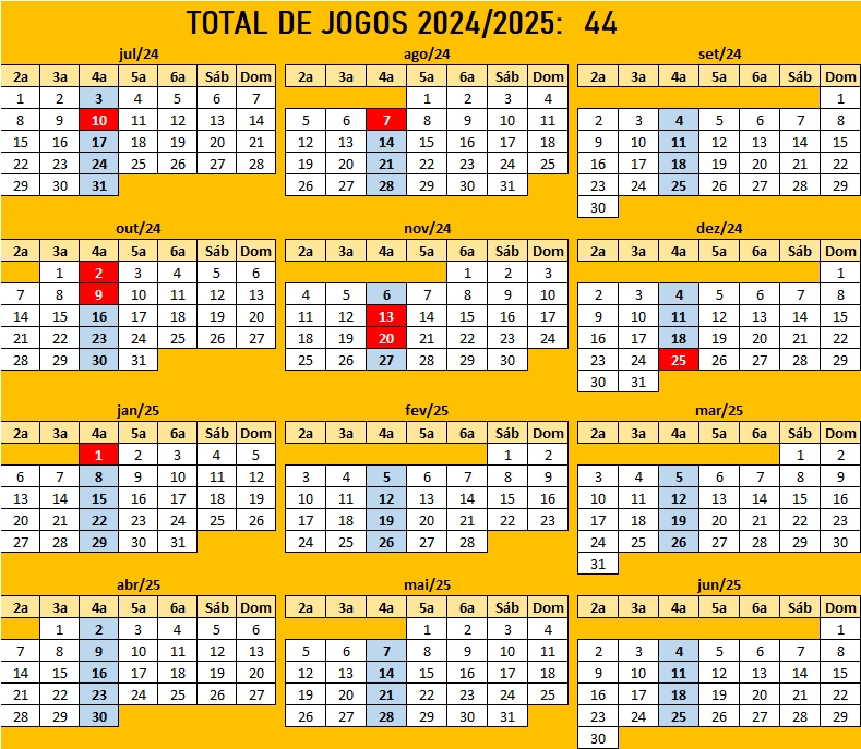 Temporada de julho/2024 a junho/2025 – jogos às 4as feiras